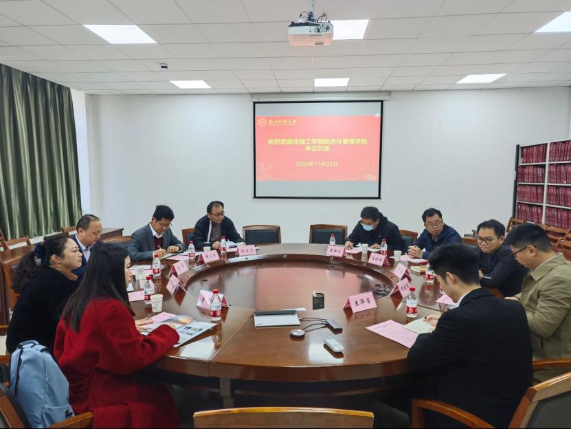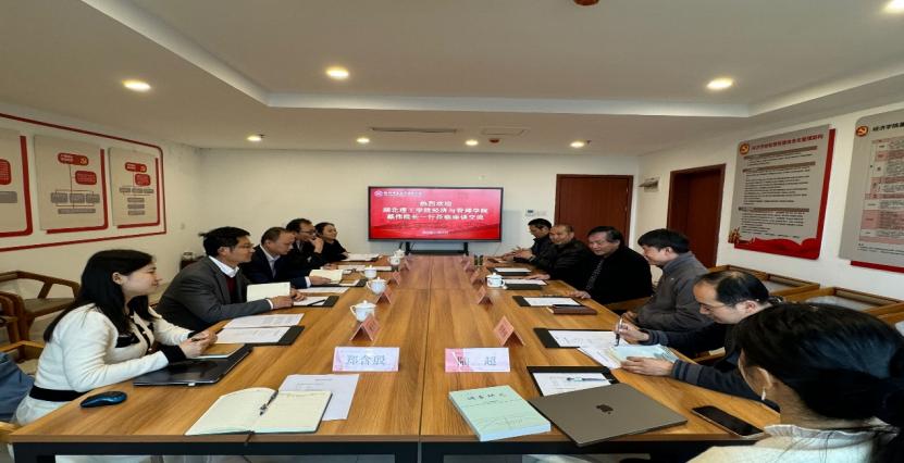 在杭州师范大学经济学院,学院党委书记余龙进、副院长温怀德、经济系主任彭伟斌、金融系主任卢锐、数字经济系主任郑秀田、数字经济系博士陆超及教务科科长郑含殷出席了本次调研座谈会。座谈会上,余龙进书记对戴伟院长一行的来访表示热烈欢迎,并对经济学院的历史沿革、学科与专业建设、国际化建设、人才培养、科研力量及智库建设、党建思政等做了全方面的介绍。戴伟院长介绍了WilliamHill中文经管学院在专业建设、师资队伍、教学科研平台建设、学生就业等方面的基本情况,并希望双方在学院经济类专业建设上能有更加深入的交流。温怀德副院长分享了学科数字化转型、教学成果奖申报、课程数字化建设、综合导师制等教学方面的经验。随后,双方就师资队伍建设、硕博点申报、课程建设、办学方式、教学与科研的平衡等方面进行了深入探讨。最后,余龙进书记还带领戴伟院长一行参观了经济学院企业经营管理电子沙盘(ERP)实验室、经济信息仿真实验室及财会信息化实验室,对实验室建设的相关经验进行了交流讨论。