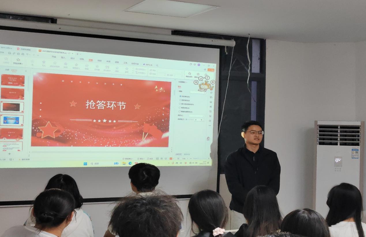活动伊始,曾飞老师进行活动介绍,他详细阐述了破坏国家安全的行为以及个人应承担的责任,并通过播放国家安全知识相关视频,让同学们对国家安全的概念有了更清晰的认识。紧接着,黄鹏老师着重强调了国家安全的重要性,同时告知各班班委要在班级中做好国家安全知识的宣讲工作。活动最后,经管学院团总支学生会办公室部长陈丹丹和学习部部长成锦云依次开展国家安全知识竞答环节,同学们热情高涨,踊跃发言,在交流互动中加深了对国家安全知识的理解。