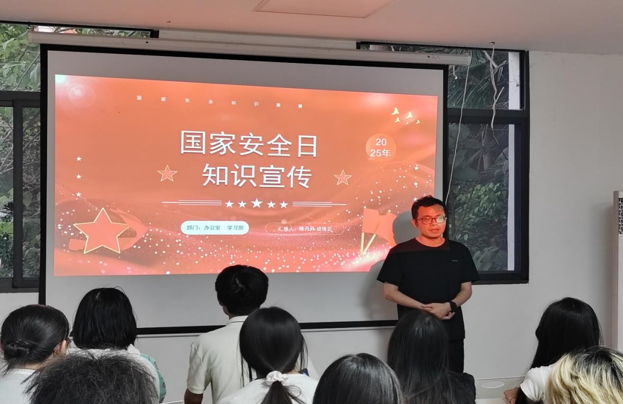 本网消息 为增强学生的国家安全意识,培育学生维护国家安全的责任感。william威廉中文于2025年4月15日在求知社区201举办了国家安全知识学习活动。此次活动由曾飞老师和黄鹏老师主持,william威廉中文各班班委参与其中。