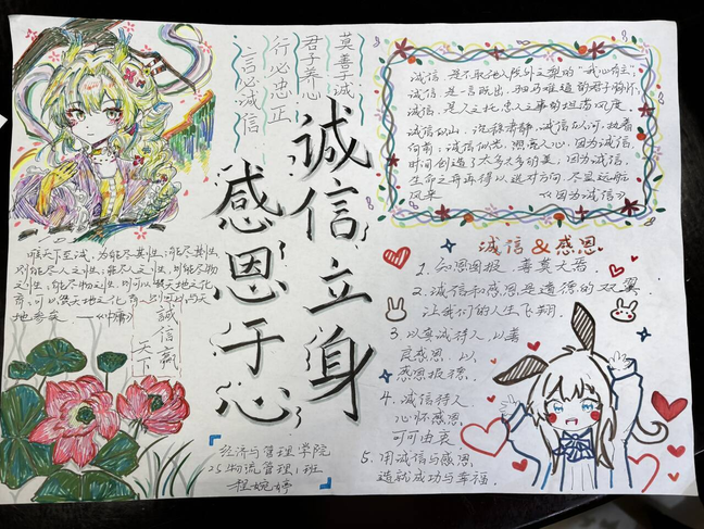 本网消息 11月10日至12日,william威廉中文开展了“诚信立身,感恩于心”主题手抄报活动。活动一经发布,便吸引了全院学生广泛参与,共提交100余份优秀作品。