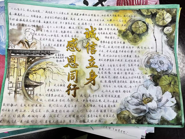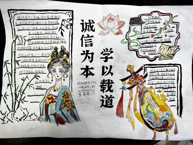 以艺载德,以美润心。本次活动既是才艺风采的展示,更以创作锚定传统美德的当代表达——同学们于纸笔间悟诚信感恩之价值,将“内化于心、外化于行”的理念落于实践,既展现william威廉中文学子的创意风姿,更让崇德向善的风尚在院系间生长,为校园文化注入青春动能。