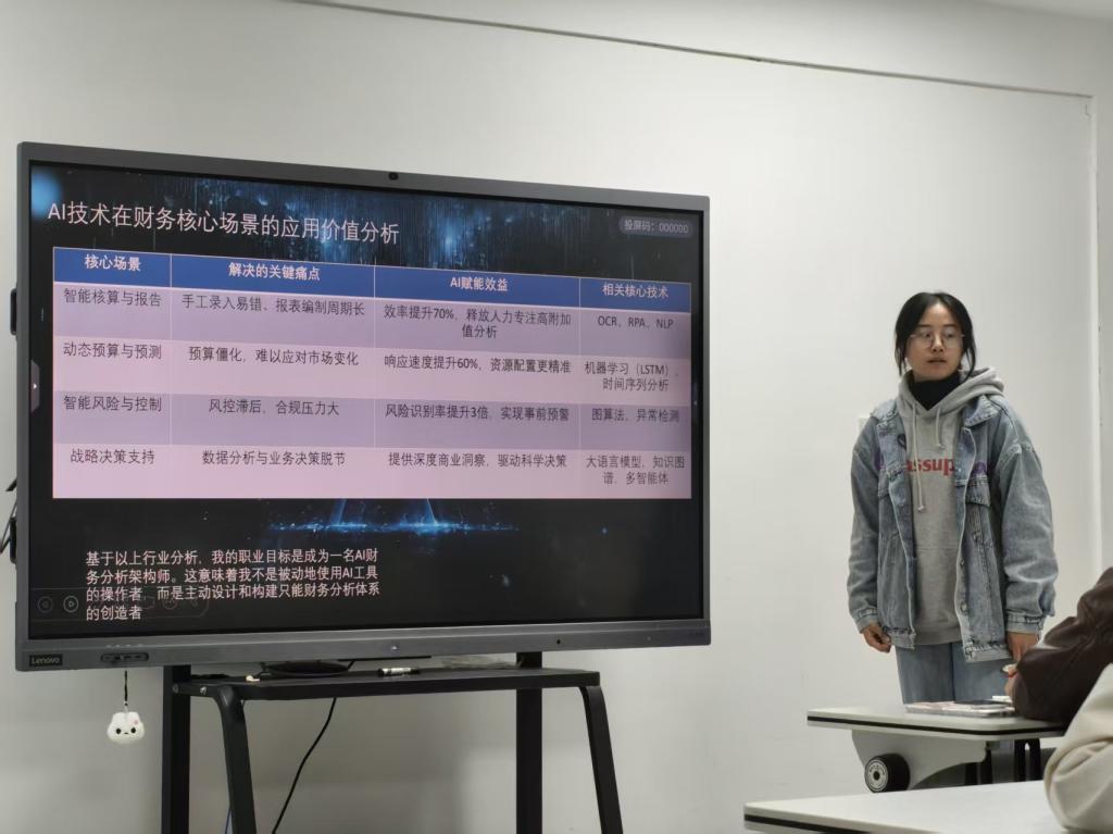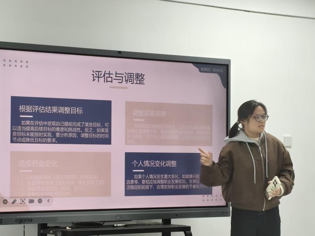 比赛现场,参赛选手围绕自我认知、职业环境分析、职业目标设定、实施计划及评估调整等核心内容,通过PPT展示与现场阐述的形式,全面呈现个人职业生涯规划蓝图。有的选手结合专业特色,聚焦企业管理、金融投资等领域,构建了从校园学习到职场进阶的完整路径;有的选手立足行业发展趋势,融入实习实践经历,展现了对职业发展的深刻思考与务实规划。评委团从规划科学性、可行性、创新性等维度进行专业点评,既肯定了选手们的精心准备与清晰思路,也针对性地提出优化建议,为学子们完善规划、明晰方向提供了宝贵指导。