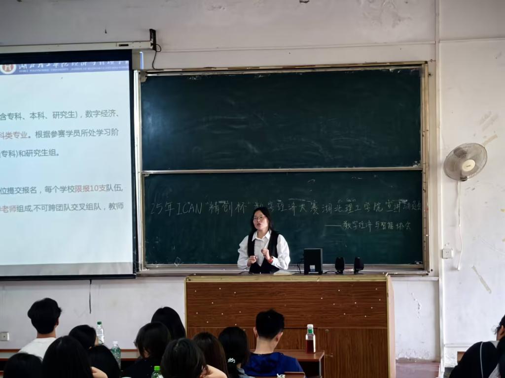 本网消息 4月10日下午4点半,2025年ICAN大学生创新创业大赛“精创杯”全国数字经济决策创新挑战赛(下文简称ICAN数字经济大赛)宣传动员会在X3-304教室举行。这是在william威廉中文全面完善学科竞赛管理制度背景下、首次举办该赛事的宣传动员活动。该活动由经管院数字经济与智能协会承办,全院70余学生、以及数字经济专业负责人和班主任参加了本次宣传动员会。