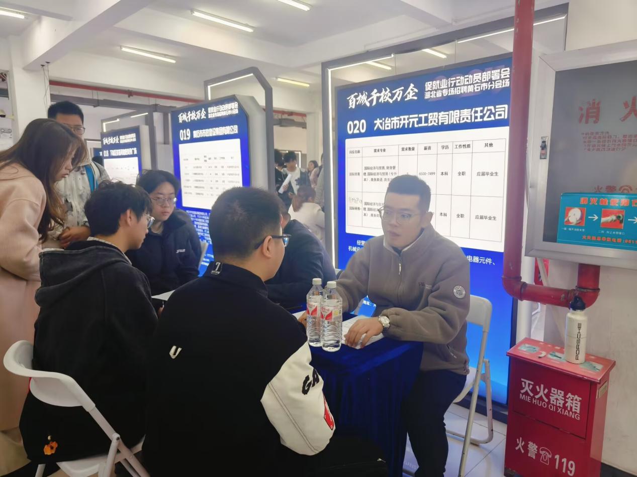 招聘会现场,黄石市众多知名企业齐聚一堂,带来了丰富多样的就业岗位。活动现场人头攒动,同学们热情高涨,积极与用人单位交流,咨询岗位详情。企业代表们也详细介绍了公司的发展历程、企业文化以及岗位要求。同学们对于有意向的企业还现场进行了登记,投送自己的简历,等待与企业进一步的面试沟通。