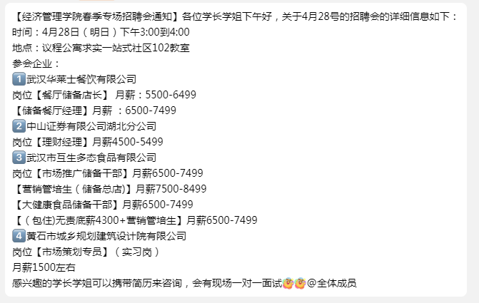 本次招聘会对接学校就业处提供的来校招聘的12家企业,提供涵盖财务管理、市场营销、人力资源管理等多个专业方向的10余个就业岗位,为毕业生求职与企业用人架起高效沟通桥梁。