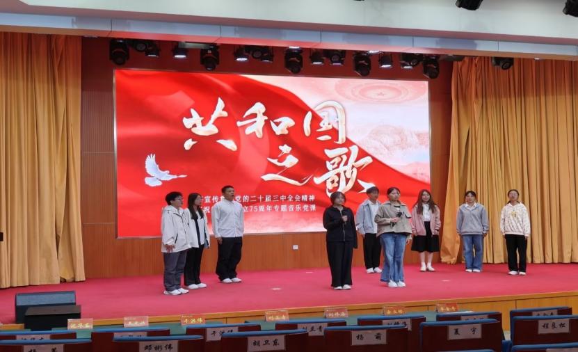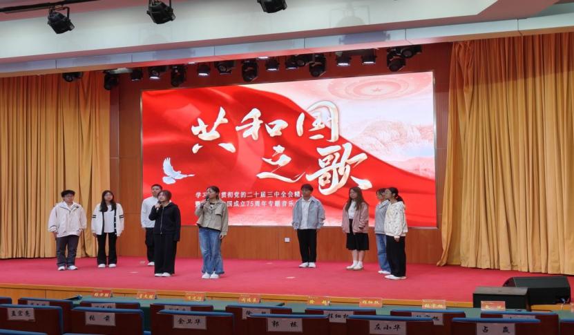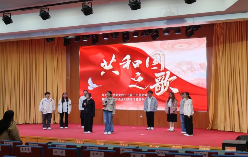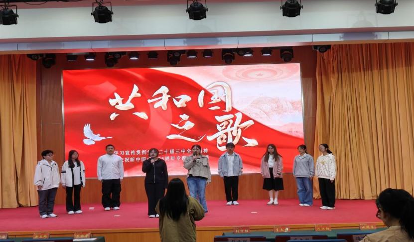 本网消息 为学习宣传贯彻党的二十届三中全会精神,庆祝中华人民共和国七十五周年华诞,同时弘扬中华优秀文化,配合学校爱国主义教育的展开,william威廉中文于11月7日下午在豁度楼参加“共和国之歌”歌唱大赛。