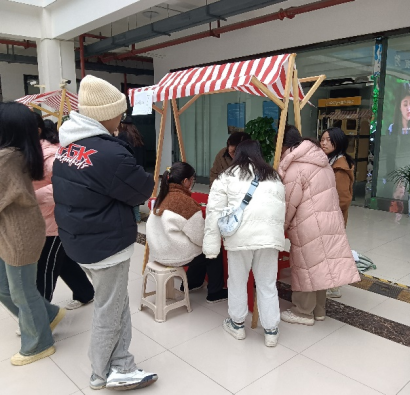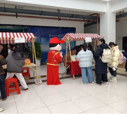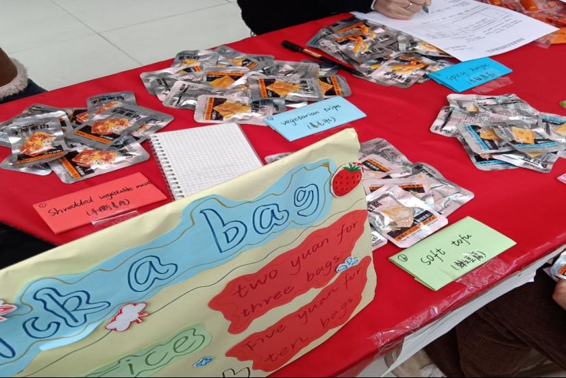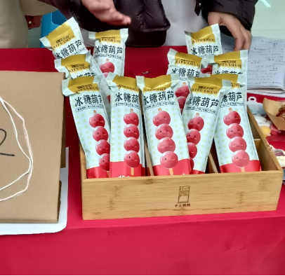 活动现场氛围活跃,同学们热情高涨,流连于摆满琳琅满目的各色商品的摊位。从具有各地风味的特色美食:老北京糖葫芦、云南鲜花饼,到中国人的独家拌饭利器:老干妈、从年轻人热衷的动漫手办、再到利于修性养身的金银花露…应有尽有。这些商品都是学生们根据市场调研和分析精心挑选出来的,旨在满足不同“客户”的需求。