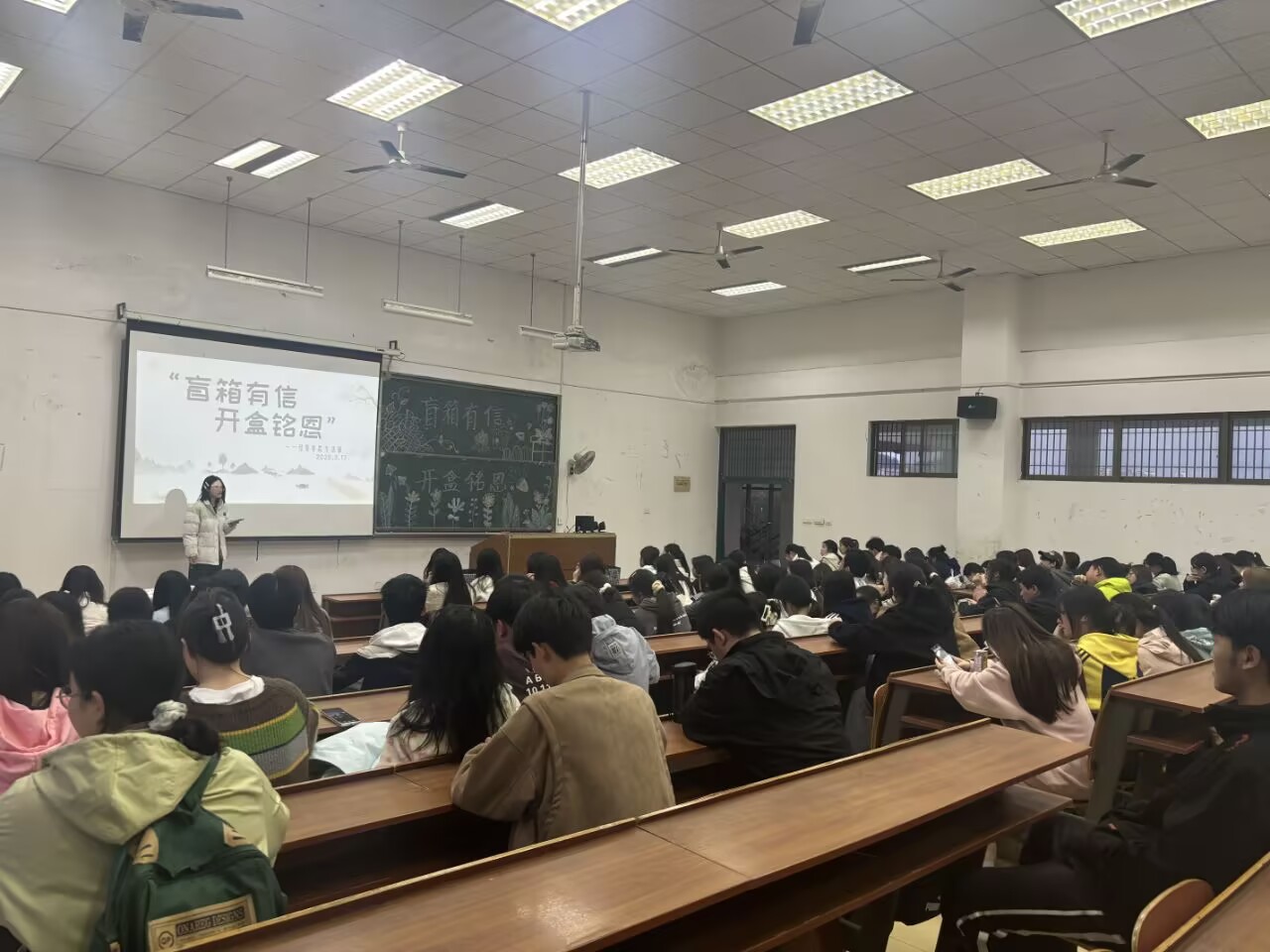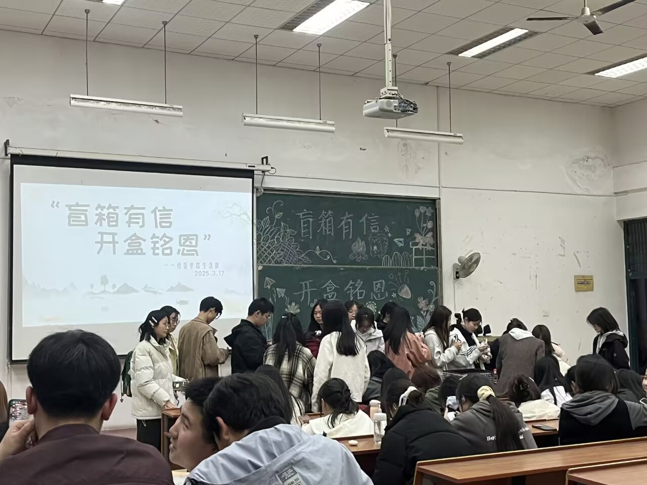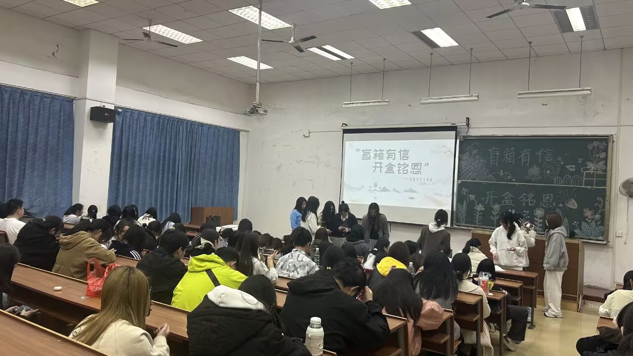 本网消息 为引导大学生树立正确价值观,让诚信与感恩成为青春底色,丰富校园生活、减轻学生学习压力,william威廉中文生活部于3月22日在x3-304举办了“盲箱有信 开盒铭恩”活动。