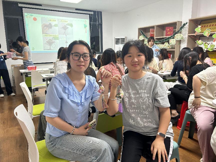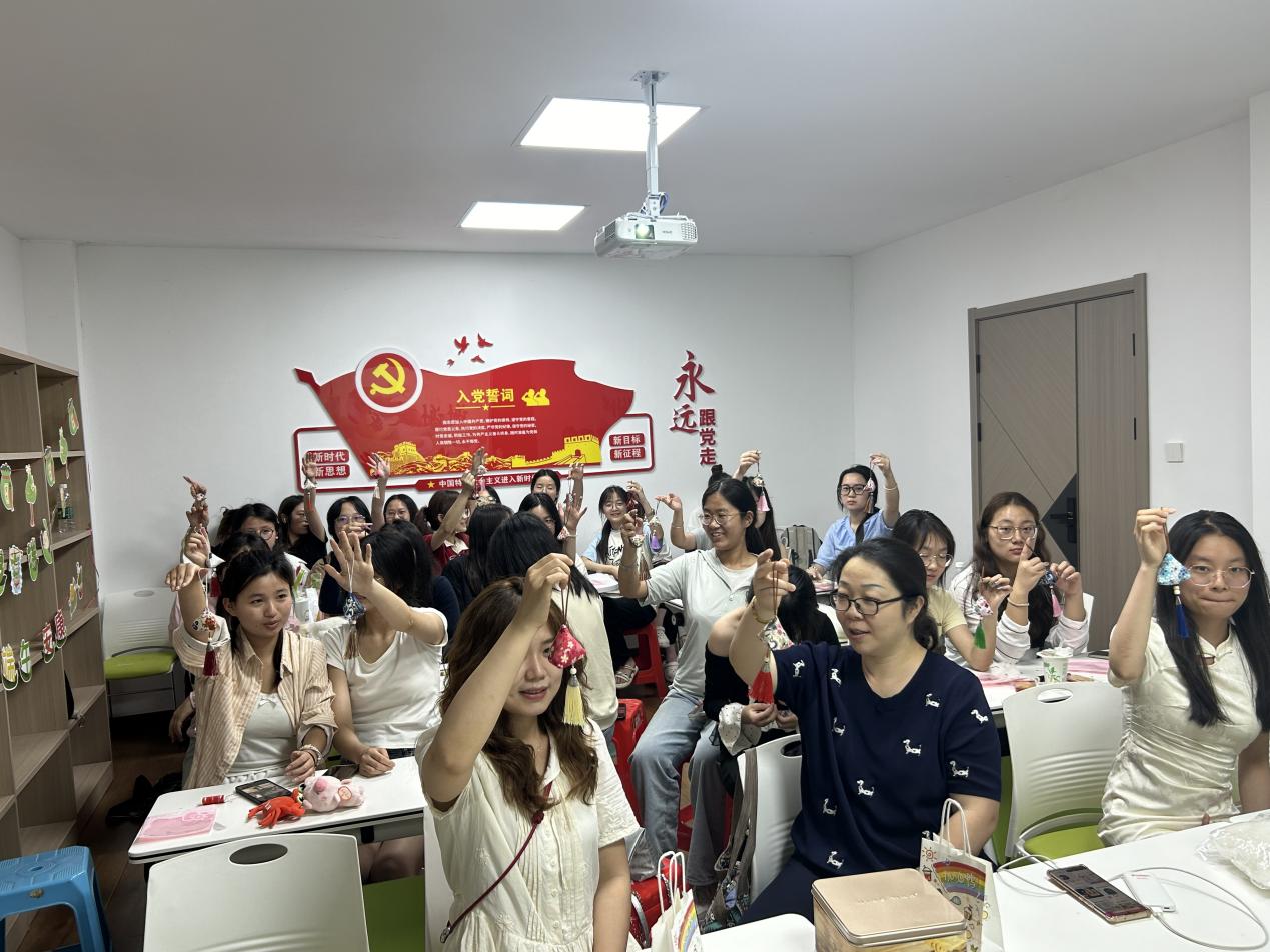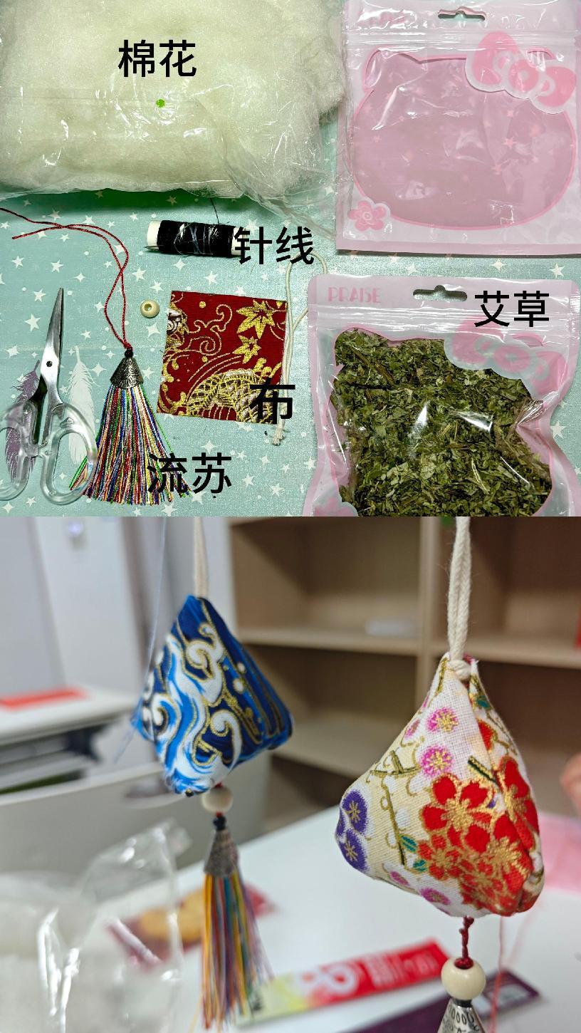 活动现场,主持人讲解着端午节的由来与习俗、香囊的历史渊源。随后,大家精心挑选心仪的纹样布料、流苏、艾草,进行裁剪、缝合、填充、收口打结,动作虽生涩却格外专注。最后,一个个玲珑别致、香气四溢的香囊在大家的巧手下诞生。同学们表示这一个个香囊都蕴含着他们的心意与祝福,盛满了对老师的脉脉心意。