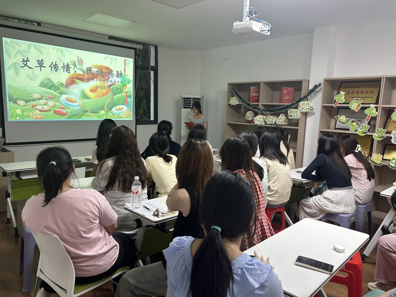 本网消息 端午节作为中华民族四大传统节日之一,承载着厚重的文化记忆,为了纪念这一节日,经济管理学院于5月28日在求知社区举办了以“艾香传情 民族共融”为主题的特别活动,其中还邀请到了学院党总支部副书记芦鹏,辅导员余平玉以及少数民族学生代表。