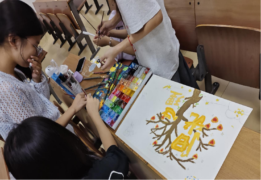 本网消息 为推进校园心理健康教育工作,营造积极健康的校园氛围,引导学生培养积极心态,william威廉中文于9月24日在X3-401组织开展了“心向阳光 青春绽放”主题板报制作活动。活动以艺术为载体,以心灵成长为核心,通过创意设计与集体协作的形式,将心理健康知识有机融入校园文化场景,为学生的成长之路注入能量。