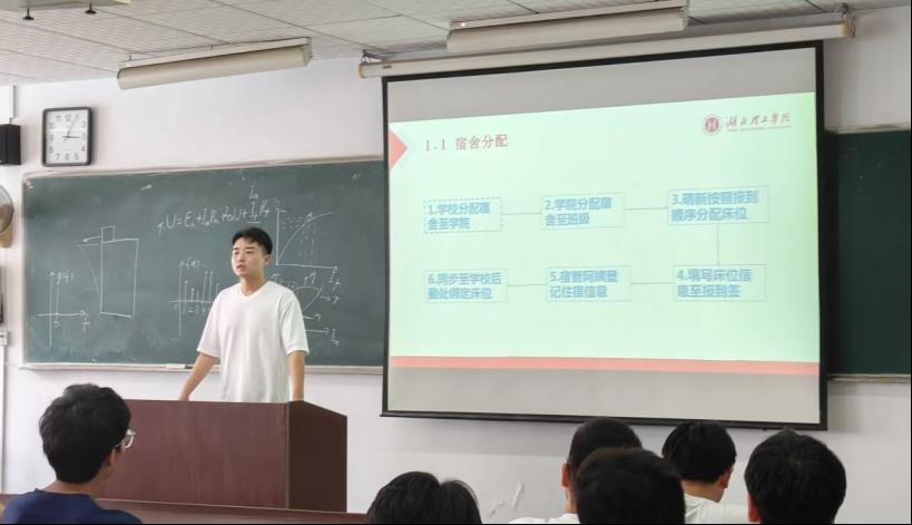 随后,学院辅导员曾飞老师带领同学们了解学风建设和国防武装,提高新生的爱军意识和国防素养,增强新生的爱党爱国爱军意识。林壮老师也向同学们详细介绍了宿舍的分配制度,帮助同学们了解相关规章。同时学院邀请易炜老师为同学们解答困扰同学们学习和生活的心理问题,提高新生心理健康水平和心理耐挫力。