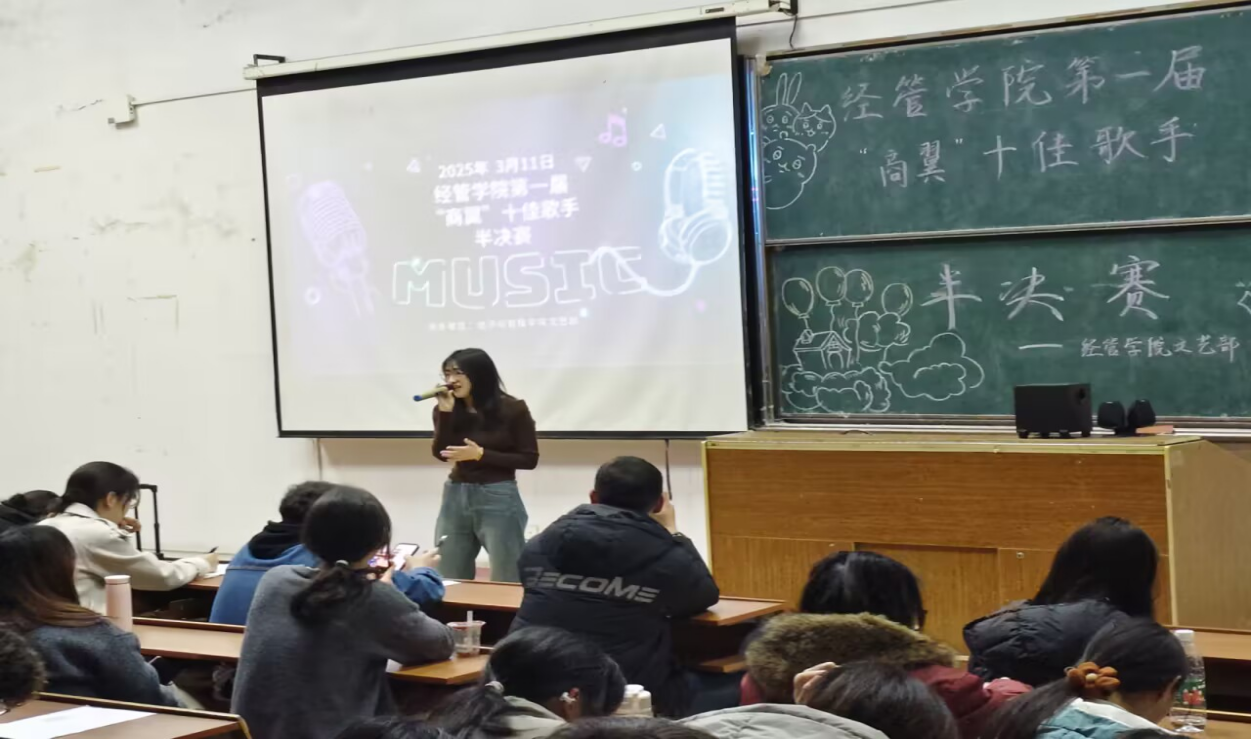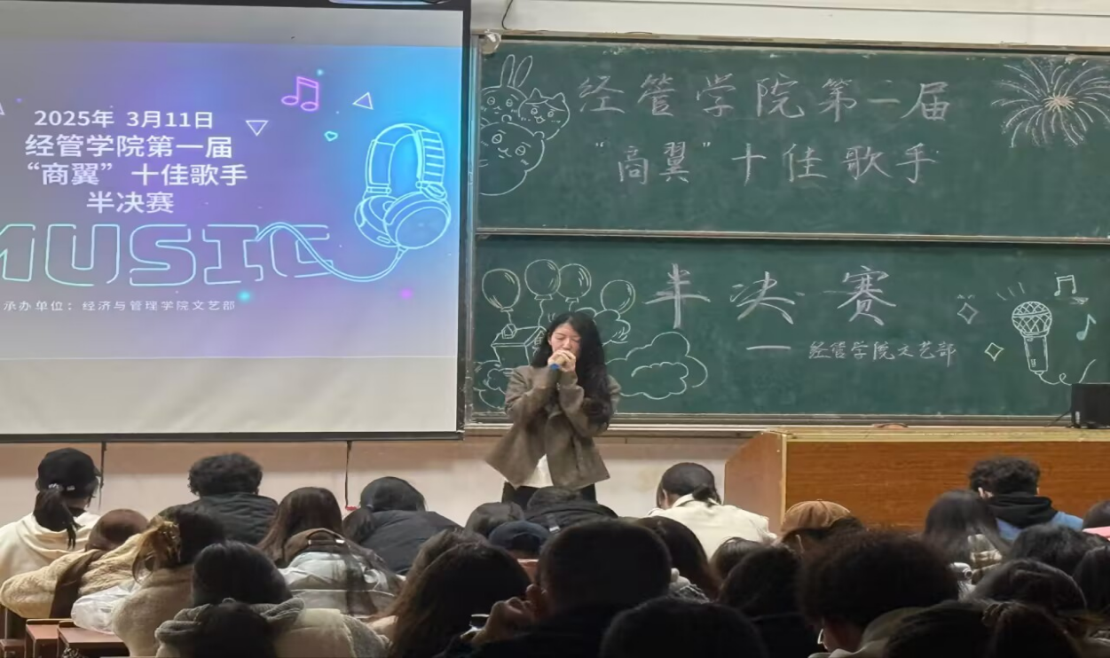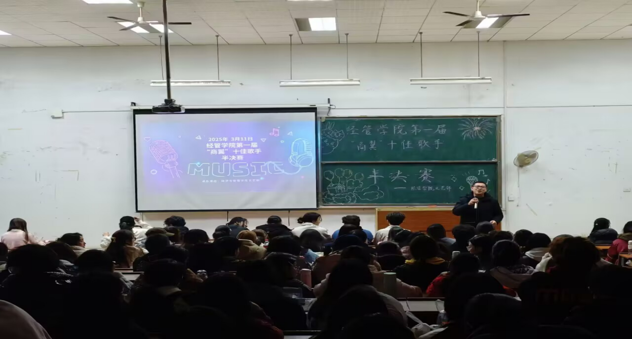 3月11日晚,学院X3-304举办首届“商翼”杯十佳歌手比赛。通过第一轮班级预赛,决出27人进入院级半决赛,汪国超老师到场指导并致辞,此次活动精心组织水平高,参赛选手歌唱水平高,观众参与热情投入高,充分展现了我院大学生精彩活泼且多才多艺的一面。