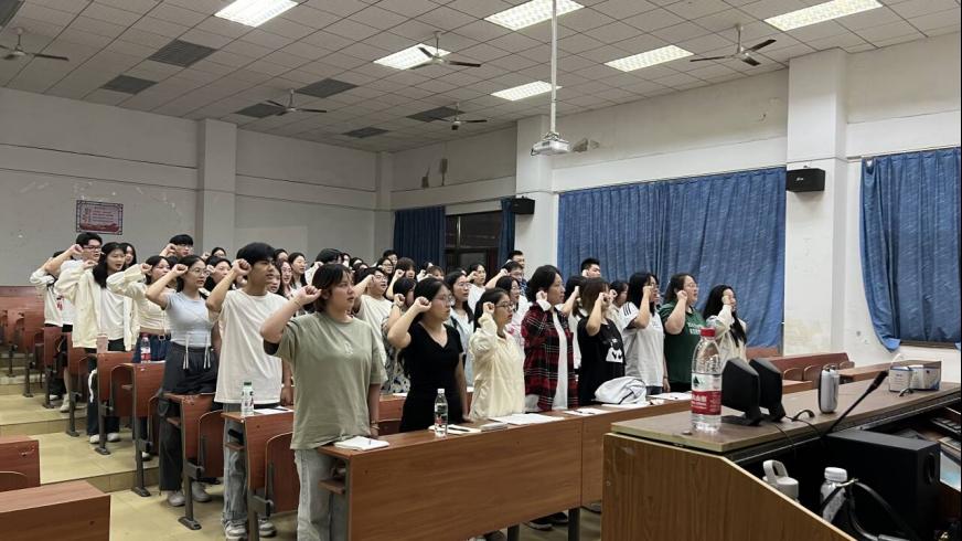 党课开始,授课人王雪怡同志带领全体入党积极分子重温入党誓词。以“何为纲领?”这一问题展开讲述,用一句话回答就是:一艘没有目标的船,任何方向的风都是逆风。中国共产党的最高纲领是实现共产主义,中国共产党在实现纲领的过程中,历经无数艰难险阻,但始终坚定信念不动摇。这给予入党积极分子很大的激励作用,在面对学习和生活中的困难时,只要坚定信念,就能勇往直前。