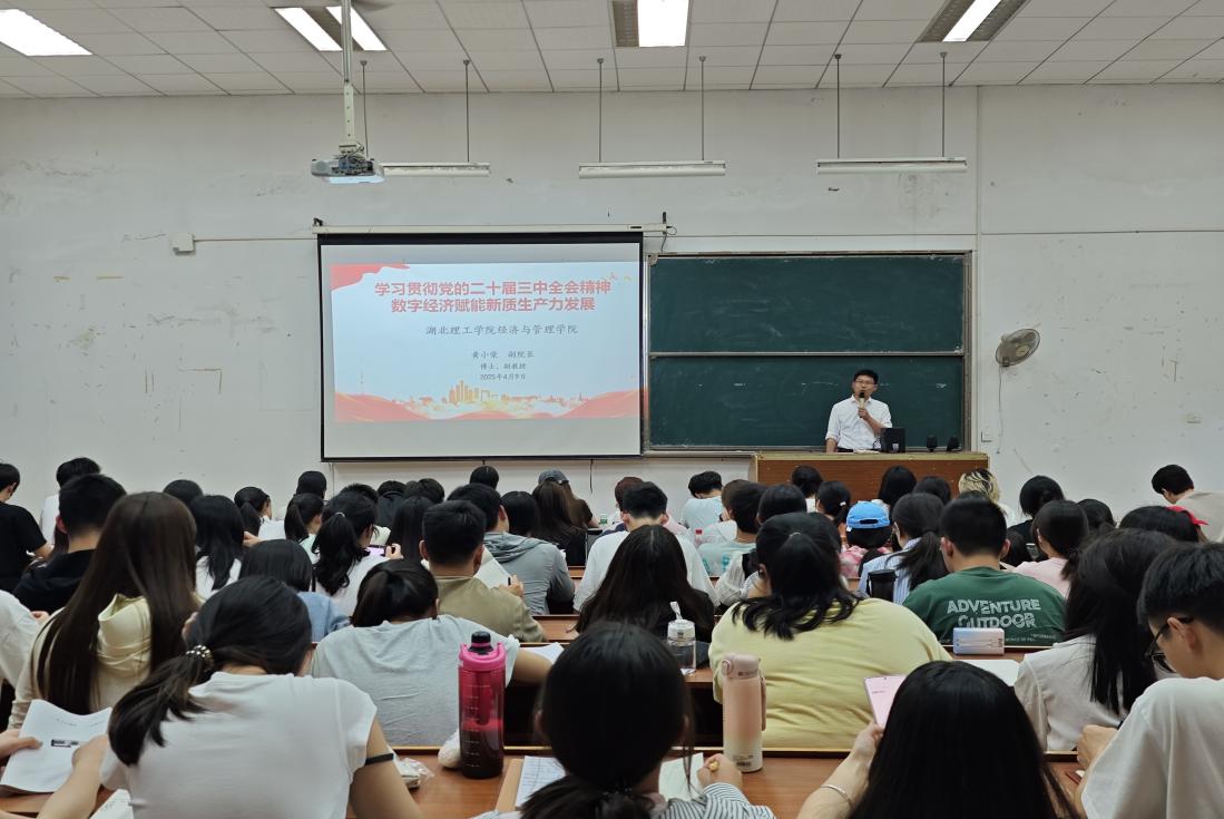 紧接着,黄小荣同志围绕“健全推动经济高质量发展体制机制”这一决定,通过案例讲解、结合国内外经济形势,剖析了我国从“高速增长”转向“高质量发展”的必然性。同时,黄小荣同志从四个方面讲述了数字经济的主要内容,指出数据已成为重要生产要素,需打破企业信息壁垒,构建协同创新网络。